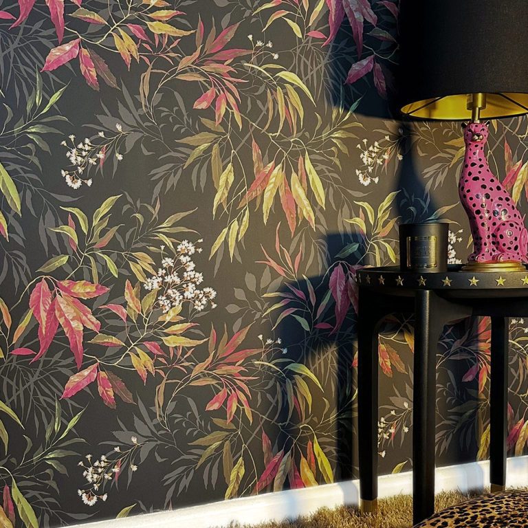 Obra de arte japonesa sobre el sauce, hojas que se extienden en cascada sobre la superficie. Estas crean una profundidad dramática y envolvente en la pared. La base y el audaz juego de colores realzan la profundidad y el efecto máximo del diseño. Combina a la perfección con pieles de animales, estampados de tela llamativos, dorado brillante y accesorios lacados en negro.